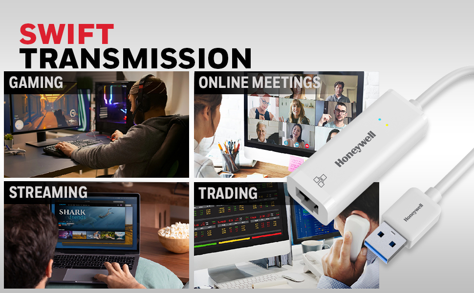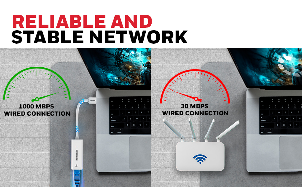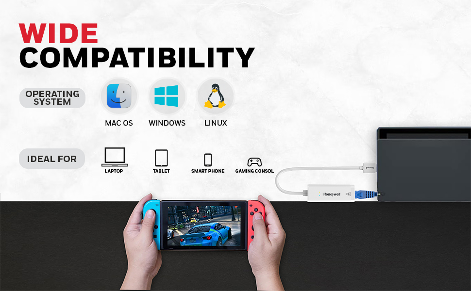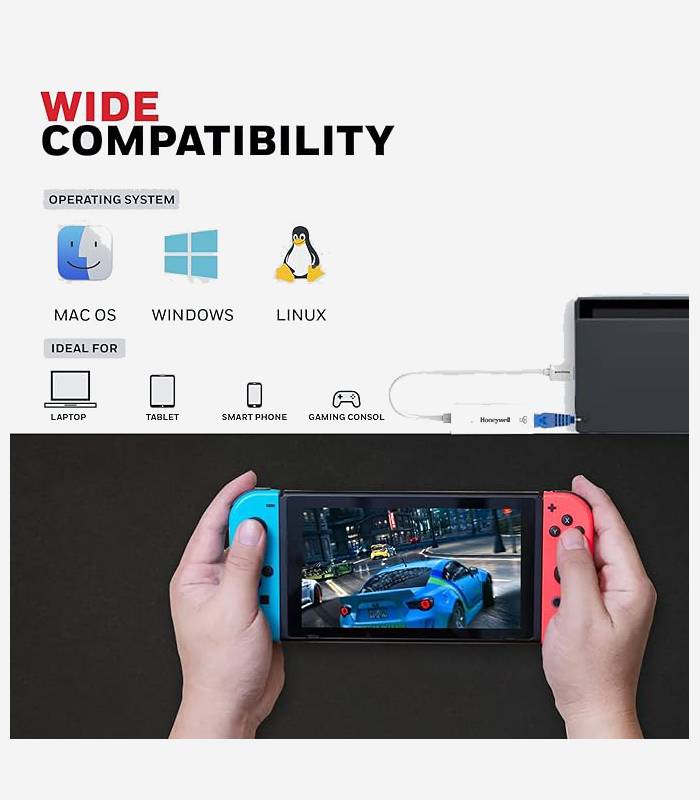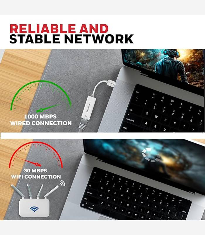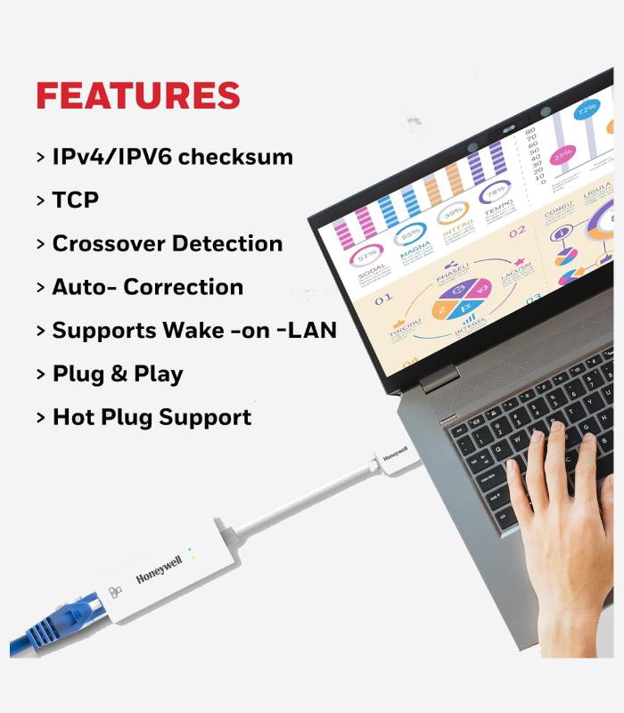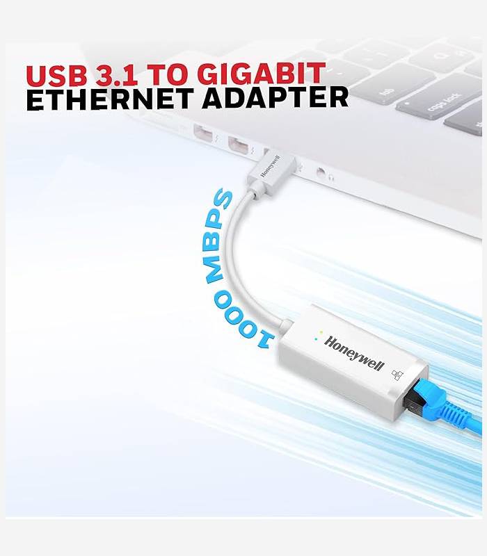 Honeywell High-Speed USB 3.1 to RJ45 Gigabit Ethernet Adapter ensures fast and reliable network connectivity with 10/100/1000 Mbps LAN speed. Ideal for laptops, desktops, gaming consoles, ultrabooks, and Chromebooks, this plug-and-play adapter simplifies setup. Enjoy seamless data transfer and network expansion with the added confidence of a 3-Years Manufacturer Warranty.