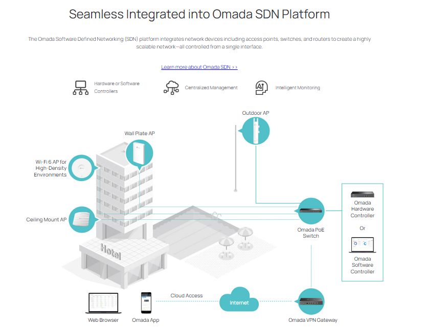 - Integrated into Omada SDN: Centralized Cloud Management and Intelligent Monitoring.